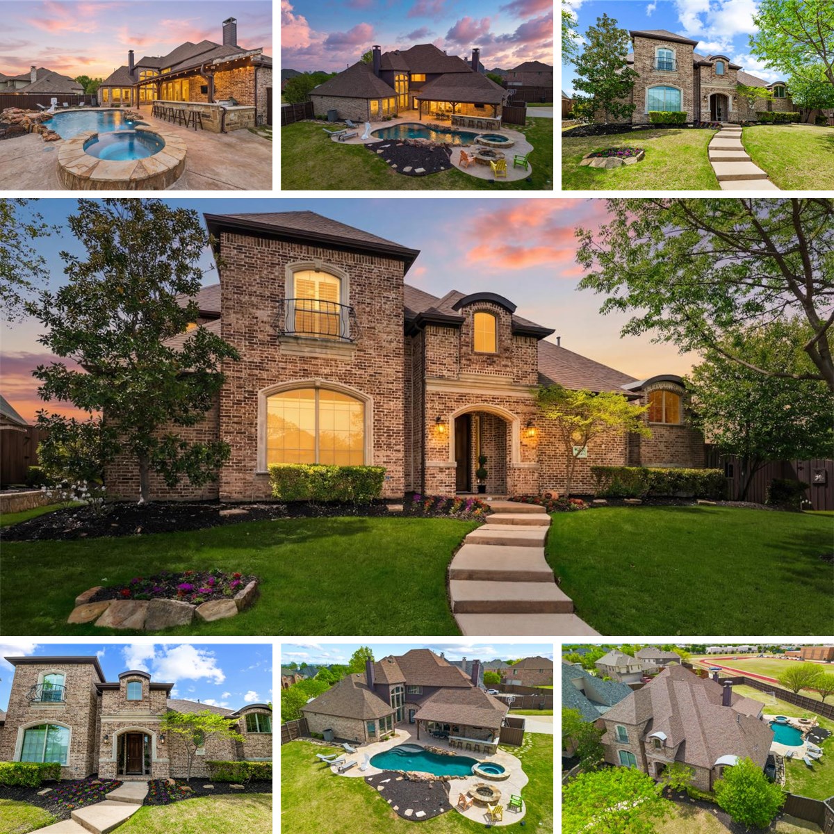Nestled on an expansive .43-acre cul-de-sac lot in Frisco and zoned to Wakeland High School, this stunning home offers the perfect blend of luxury, privacy, and location. Thoughtfully designed with high-end finishes throughout, the home features hardwood floors, custom lighting, plantation shutters, and a warm, inviting color palette that creates a seamless flow from room to room. The beautifully appointed kitchen showcases granite countertops, a breakfast bar, center island, butler’s pantry, and gas cooktop—ideal for both everyday living and entertaining. The functional layout includes a primary suite and guest bedroom on the main level, with three additional bedrooms, a spacious game room, and a fully equipped media room upstairs complete with projector, screen, speakers, and wet bar. Step outside to your own private retreat—an incredible backyard paradise featuring a sparkling pool with waterfalls, spa, and fire pit, all visible from many areas of the home. The expansive covered outdoor kitchen is a true highlight, equipped with a BBQ grill and Green Egg, creating the perfect setting for year-round entertaining. A slider gate adds both privacy and security, while the oversized driveway provides ample parking for guests. With plenty of room to relax, play, and entertain, this home is a rare find that truly has it all.